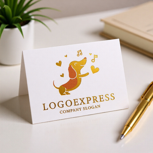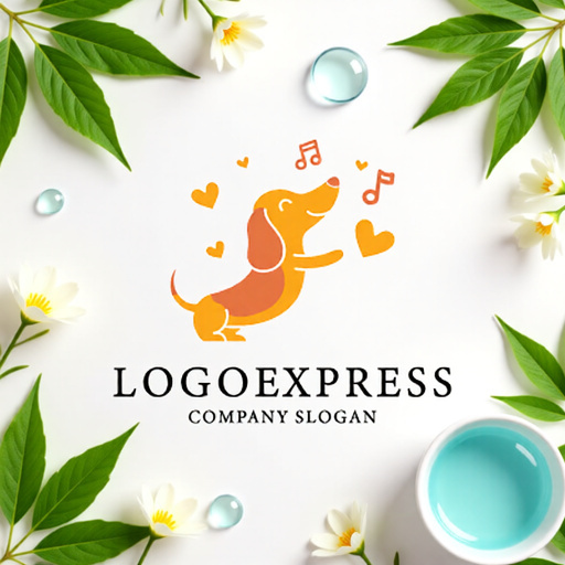 ダックスフントは、愛らしさ、忠誠心、活発さを象徴し、ペットとの温かい繋がりや家族の一員としての存在を表します。周囲に散りばめられたハートは愛情、幸福感、優しさを、音符は楽しさ、喜び、そして心地よい環境を表現し、見る人にポジティブで幸せな印象を与えます。オレンジ色(と黄色)は、活気、親しみやすさ、温かさを、ピンク色は愛情、優しさ、幸福感を象徴し、企業が提供するサービスの魅力と温かい心遣いを強調します。ペット関連企業(ペットショップ、動物病院、ペットサロン)、子供向けサービス、家族向けブランド、動物保護団体、音楽教室など、愛情、楽しさ、そして温かさをアピールしたい業界に最適です。