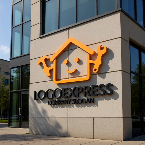 笑顔の家は、安定、安心、快適な住まい、そして家族の幸福感を象徴し、顧客の暮らしに寄り添う温かい心遣いを示します。ハンマーとスパナは、建設、修理、メンテナンス、DIY、そして専門的な技術やサービスを表現し、家に関するあらゆる問題を解決する能力と、高いプロフェッショナリズムを暗示します。全体として、顧客が安心して「お任せできる」ような、万能なホームサービスを提供することへのコミットメントを伝えます。オレンジ色のラインは、温かさ、親しみやすさ、活力、幸福感を象徴し、見る人に明るく、優しい印象を与えます。建設業、リフォーム、ハウスクリーニング、ホームメンテナンス、DIYショップ、住宅設備、不動産、または子供向けの安全教育など、安心、快適、品質、そして親しみやすさをアピールしたいあらゆる業界に最適です。