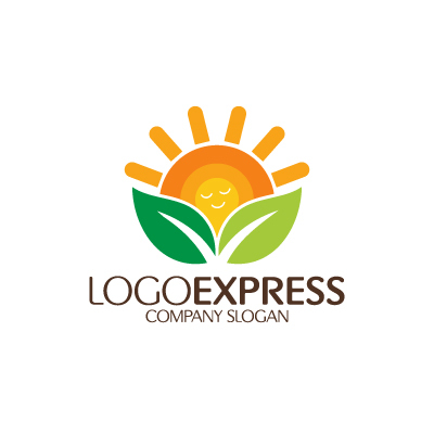 笑顔の太陽と葉のナチュラルロゴ [9921]