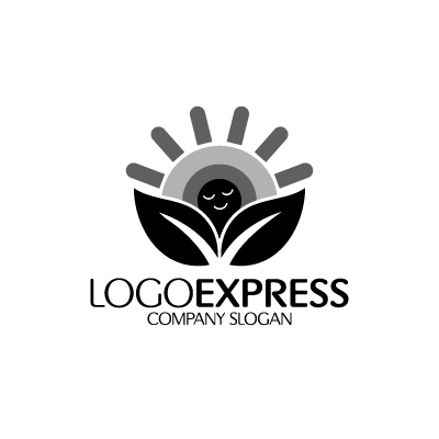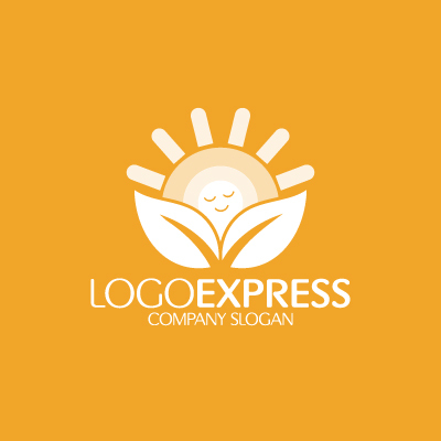 このロゴは、笑顔の太陽が二枚の葉っぱに優しく包み込まれている、温かく自然なデザインです。