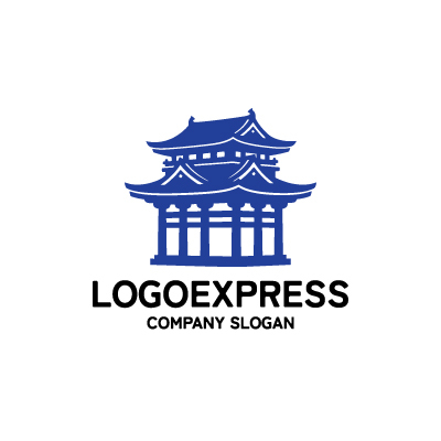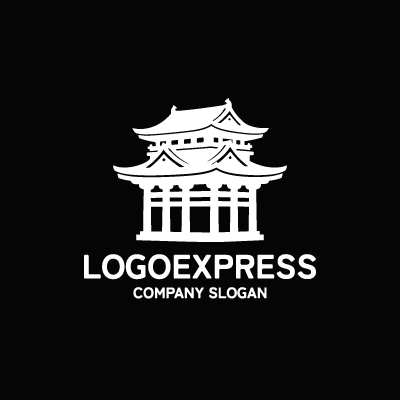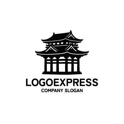日本の寺院や城郭を思わせる、伝統と荘厳さを感じさせるシルエットロゴです。