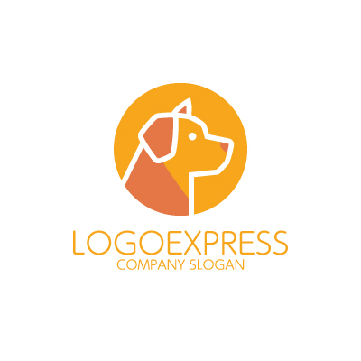 円の中に、モダンでスタイリッシュな犬の横顔が描かれたロゴです。