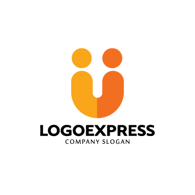 二人の人物が互いに向かい合い、全体でUの文字を形成しているデザインは、協力、支援、コミュニティ、友情、家族、そしてコミュニケーションといった「人との繋がり」を象徴します。これは、顧客やパートナーとの良好な関係、社員同士の絆、あるいは社会貢献への意識を表します。また、U字は企業の頭文字として使用できるだけでなく、人を優しく包み込むような安定感と包容力も兼ね備えています。オレンジ色と黄色のグラデーションは、温かさ、親しみやすさ、エネルギー、幸福感を象徴し、企業が持つ活気と、顧客に対して与える温かい印象を強調します。人材サービス、教育、福祉、地域コミュニティ、NPO、コンサルティング、家族向けサービスなど、人と人との絆、温かさ、そして支援を大切にするあらゆる業界に最適なデザインです。