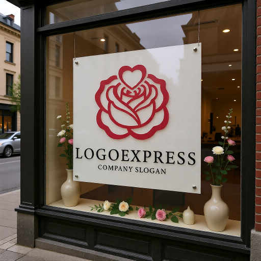 バラは美しさ、情熱、愛情、優雅さ、ロマンス、女性らしさ、または成長を象徴し、企業が提供するサービスや製品の洗練された品質と魅力を表現します。中央のハートは、深い愛情、思いやり、幸福、献身、そして温かい絆を意味します。深い赤色(またはワインレッド)は、情熱、愛、高級感、洗練、女性らしさを強くアピールし、見る人に優雅で忘れがたい印象を与えます。美容・エステサロン、ウェディング、アパレル、フラワーショップ、高級ブランド、女性向けクリニック、ギフトショップ、個人ブランドなど、美しさ、優雅さ、愛情、そして特別な価値をアピールしたい業界に最適です。