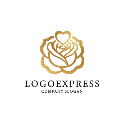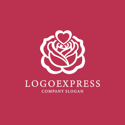 バラの花の中心にハートが描かれた、優雅で愛情あふれるロゴです。