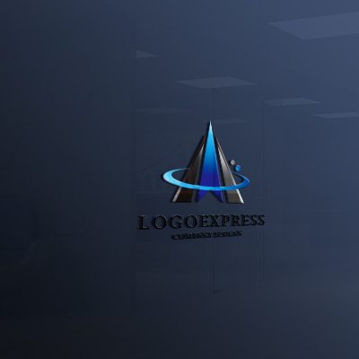 Aの文字を立体的なタワーのように見立て、その周囲を輝く軌道が巡る、モダンで未来志向のロゴです。