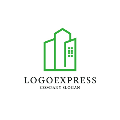 このロゴは、シャープなラインで描かれた複数のビルや建物が、都市の景観を思わせるように配置された、モダンで洗練されたデザインです。