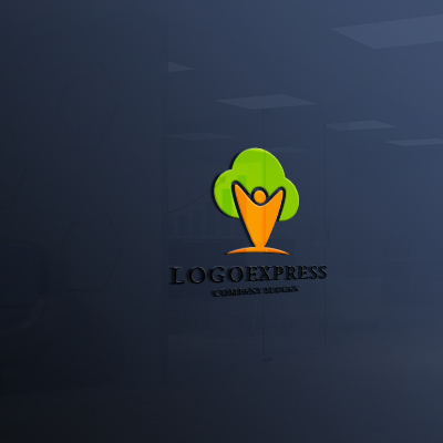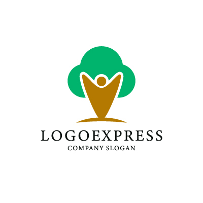 このロゴは、幹から枝を広げるように成長する人物のモチーフと、豊かな葉を持つ木が融合した、自然との共生と成長を表現するデザインです。