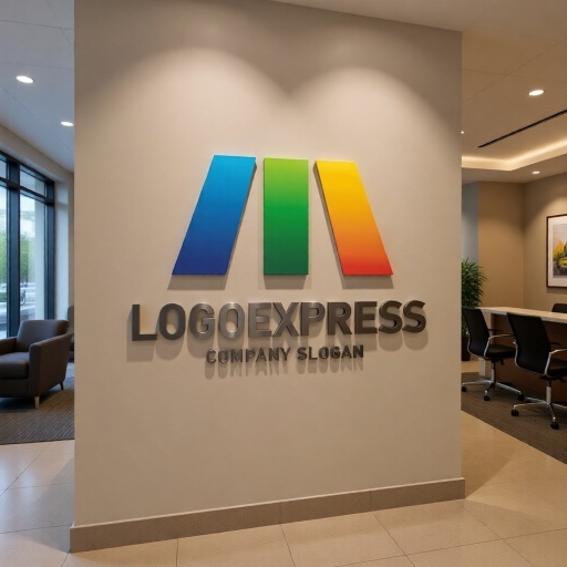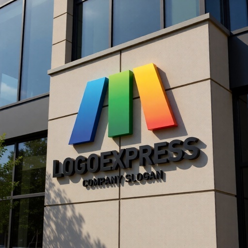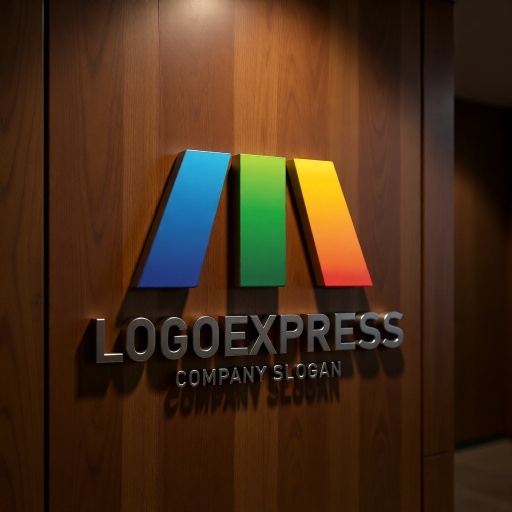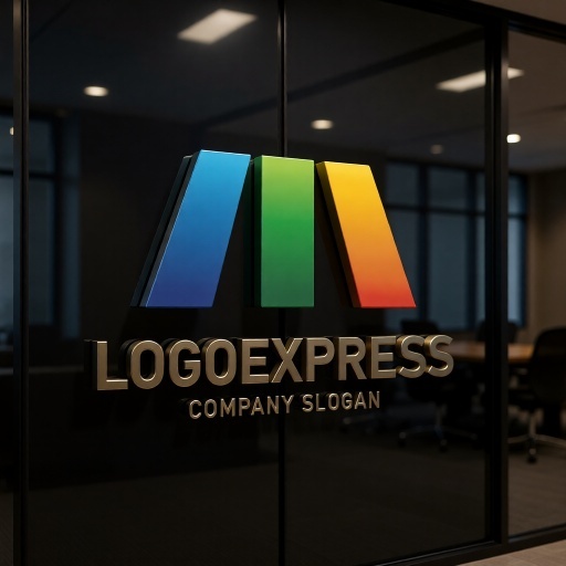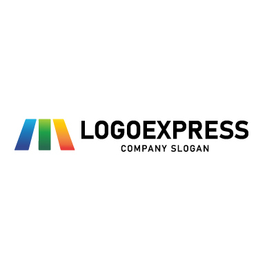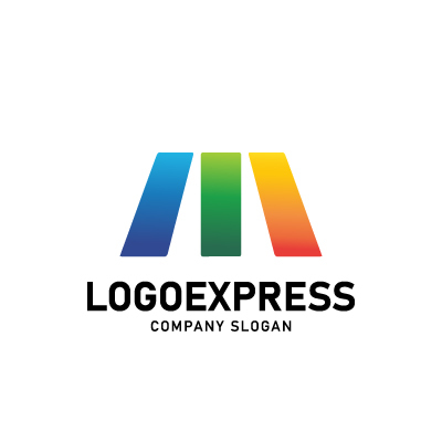 三色の柱で構成されたMの文字を象徴する、モダンで力強いロゴです。