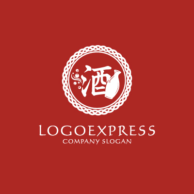 「酒」の漢字と徳利の和風ロゴ [10459]