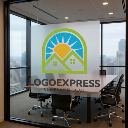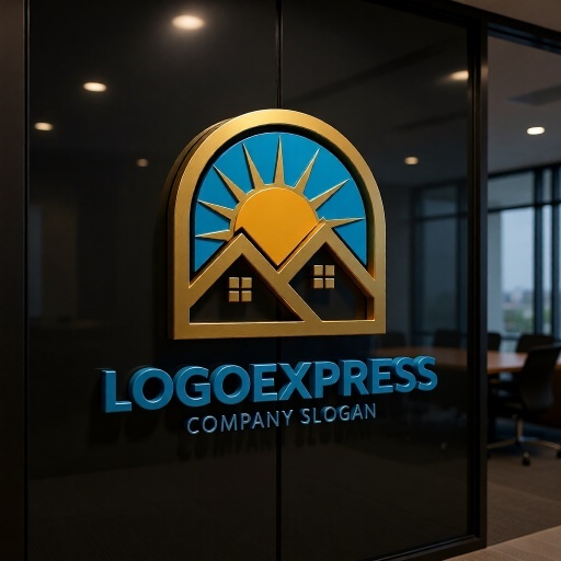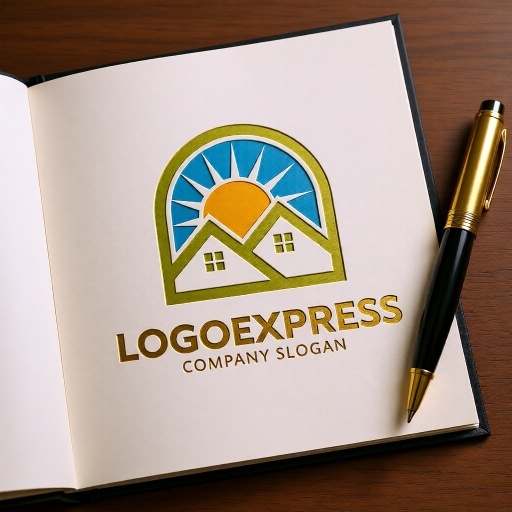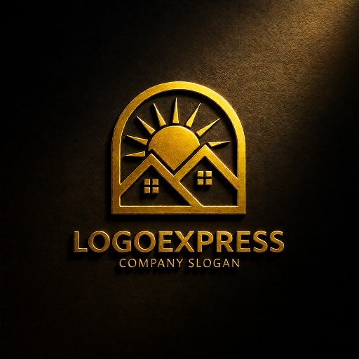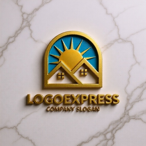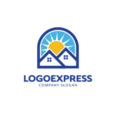 二軒の家は、コミュニティ、家族、安定、安心、そして住まいを象徴し、企業が提供するサービスが顧客にとって信頼できる基盤となることを示します。背後から昇る太陽と青い空は、希望、新しい始まり、明るい未来、エネルギー、そしてポジティブな生活環境を表現します。全体を包み込むアーチは、保護、サポート、そして広がるコミュニティや持続可能な発展を意味します。