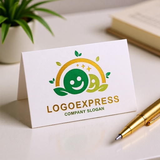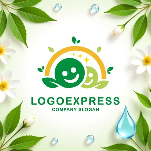 緑色の笑顔と葉は、自然の豊かさ、活気、安らぎを、オレンジ色のアーチと星は、活力、幸福、創造性、そして明るい未来への希望を象徴し、企業が持つ環境への配慮と顧客への健やかな未来への貢献を強調します。オーガニック食品、健康食品、ウェルネス産業、美容・エステサロン、フラワーショップ、自然療法クリニック、環境保護団体、教育・子育て支援など、自然との調和、健康、優しさ、そして新しい成長をアピールしたいあらゆる業界に最適です。