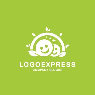 このロゴは、笑顔の顔と葉っぱのモチーフが重なり合い、上部のアーチと輝く星に囲まれた、温かく自然なデザインです。