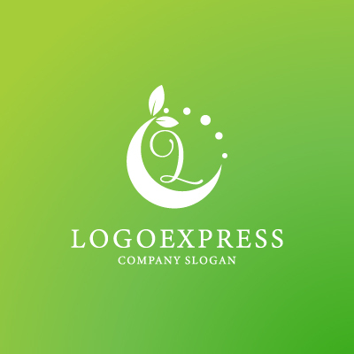 優雅な筆記体Lの文字を、生命力あふれる葉と水滴を思わせるドット、そして三日月状の曲線が囲む、自然で穏やかな印象のロゴです。