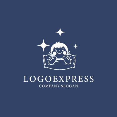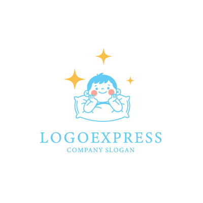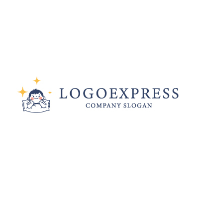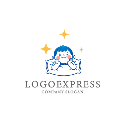 枕で微笑む子供と輝く星のロゴ [10478]