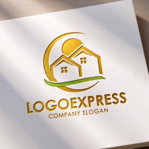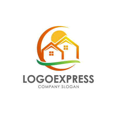 二軒の家は、コミュニティ、家族、安定、安心、そして住まいを象徴し、企業が提供するサービスが顧客にとって信頼できる基盤となることを示します。背後から昇る太陽は、希望、新しい始まり、明るい未来、エネルギー、そしてポジティブな生活環境を表現します。下部の緑のラインは、自然との調和、成長、環境への配慮、そして持続可能な暮らしを意味します。全体を構成する円(または弧)は、統一、完全性、グローバルな視野、そして保護やサポートを象徴します。