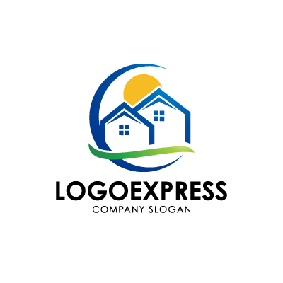 青色の家々は、信頼性、プロフェッショナリズム、知性、安定感を、黄色の太陽は、活力、幸福、創造性、楽しさを、緑色のラインは、自然、健康、成長、安らぎを象徴し、企業が持つ環境への配慮と顧客への安心感を強調します。不動産、建設、リフォーム、スマートホーム技術、住宅設備、幼稚園・保育園、地域コミュニティ支援、環境関連企業、ウェルネス、または金融機関など、安心、成長、自然との調和、そして明るい未来をアピールしたいあらゆる業界に最適です。
