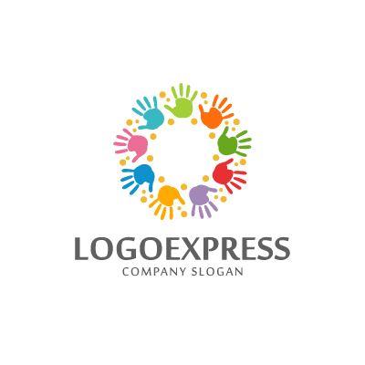 カラフルな手と手を取り合う共創ロゴ [10502]