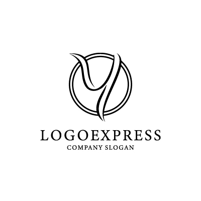 流れるような曲線で描かれた優雅な「Y」の文字が、輝く円の中に収められた、上品で高級感あふれるロゴです。