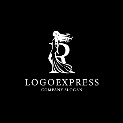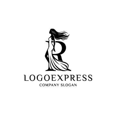エレガントなRの文字と女性のシルエットのロゴ [10514]