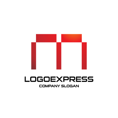 Mの文字を、ピクセルアートのような直線的なブロックとラインで表現した、モダンでテクノロジーを感じさせるロゴです。