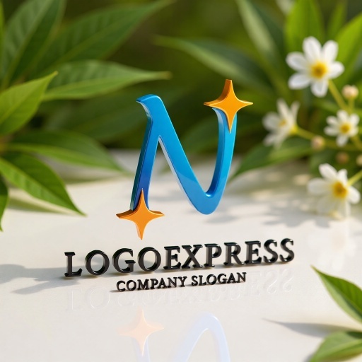 Nの文字が優雅な曲線で表現され、両端に輝く星が添えられた、希望と成長に満ちたロゴです。