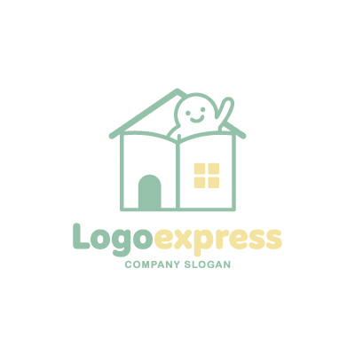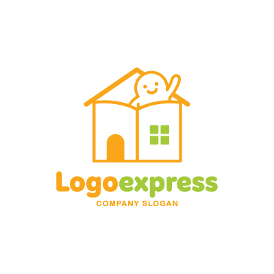 家は、安心、安全、温かい家庭、そして子供たちが安心して過ごせる居場所を象徴します。開かれた本は、知識、学習、教育、新しい発見、そして無限の成長の可能性を意味します。笑顔の子供の姿は、幸福、喜び、好奇心、純粋さを表現し、手を振るポーズは歓迎と親しみやすさを示します。全体として、安全で愛情深い環境の中で、子供たちが楽しく学び、健やかに成長していく姿を暗示します。淡い緑色のラインは、自然、成長、健康、安らぎ、そして環境への配慮を、黄色の窓は、希望、明るさ、知恵を象徴し、企業が持つポジティブで信頼できるイメージを強調します。幼稚園、保育園、託児所、学習塾、図書館、子供向け教育アプリ、絵本出版社、子育て支援団体、家族向けサービス、または子供に優しい住まいを提供する不動産や建築設計など、子供たちの成長、学び、安心感を大切にするあらゆる業界に最適です。