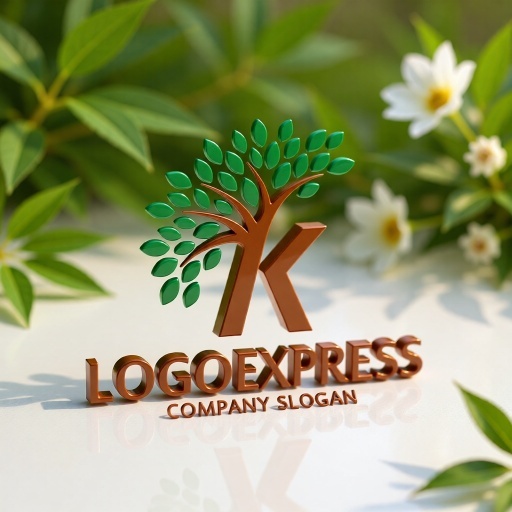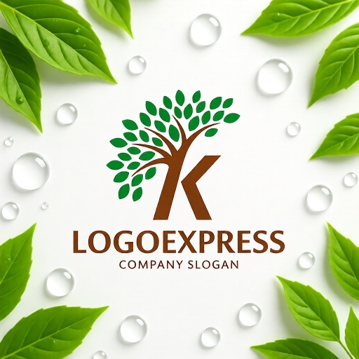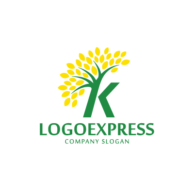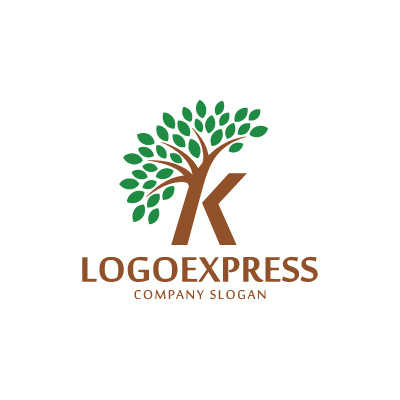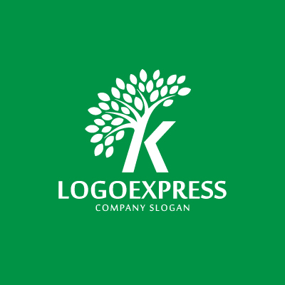 Kの文字と葉が織りなす成長の木ロゴ [10778]