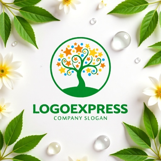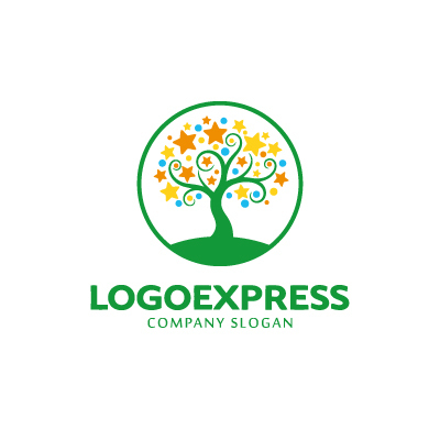 緑色は、自然、健康、成長、安らぎを、オレンジや黄色の星は、活力、幸福、創造性を、青やピンクのドットは、多様性と楽しさを象徴し、企業が持つポジティブで温かいイメージを強調します。幼稚園、保育園、学習塾、子供向け製品、教育機関、NPO、地域コミュニティ支援、環境保護団体、ウェルネス産業、ライフスタイルブランドなど、子供たちの成長、夢、自然との調和を大切にするあらゆる業界に最適なデザインです。
