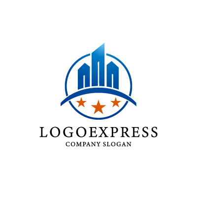 そびえ立つビル群は、成長、進歩、都市開発、不動産、そして企業の堅実な事業基盤を表しています。青色は信頼、プロフェッショナリズム、安定性、先進性を象徴し、企業が提供するサービスの堅実さと未来志向を強調します。円形は、グローバルな視野、コミュニティ、完全性、そして保護を意味し、事業の広がりと顧客への包括的なサポートを示唆します。三つのオレンジ色の星は、卓越した品質、成功、高い評価、そしてお客様への約束を表しており、企業が常に最高のサービスを目指す姿勢と実績を伝えます。不動産、建設、都市開発、金融、コンサルティング、ホテル・観光、評価機関など、発展、信頼、品質、そして地域貢献をアピールしたい業界に最適です。