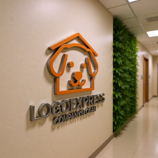 愛らしい犬の表情は、忠誠心、喜び、家族の一員としての温かい感情を呼び起こし、ペットへの愛情と幸福感を表現します。屋根のモチーフは、安心できる「家」や「居場所」、そして手厚い「ケア」や「保護」を象徴しており、ペットと飼い主にとっての安全と快適さを提供する企業イメージを伝えます。オレンジ色は、活気、親しみやすさ、温かさ、そして幸福を意味し、顧客に対して明るくフレンドリーな印象を与えます。ペットショップ、動物病院、ペットサロン、ペットホテル、ドッグカフェ、ペットフード関連企業、しつけ教室、動物保護団体など、ペットとその家族に寄り添う温かいサービスを提供したい業界に最適です。