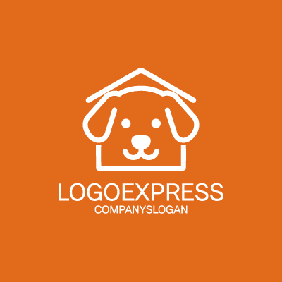 可愛らしい犬の顔と、その頭上に家のような屋根のモチーフを組み合わせた、温かみのあるロゴデザインです。