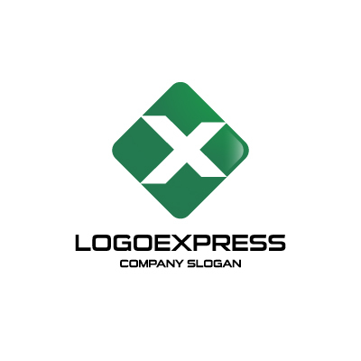 丸みを帯びた菱形(スクエア)の中に、シャープなアルファベット「X」が配置されたモダンなロゴデザインです。