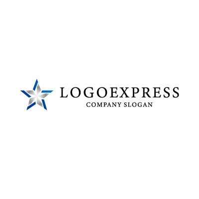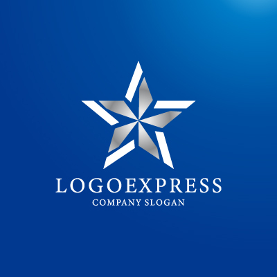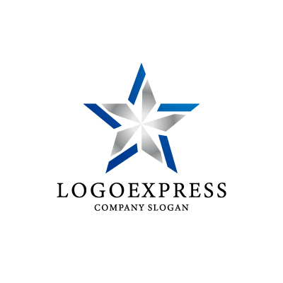 シャープなラインで構成され、青とシルバーのグラデーションで彩られた五芒星のロゴデザインです。
