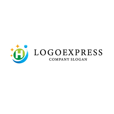 Hと輝く星、人型が示す健康と成長のロゴ [10866]