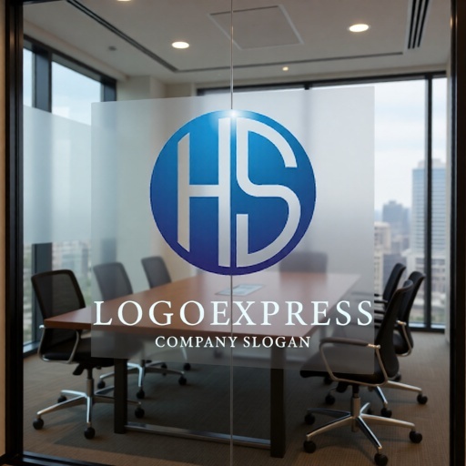 丸いフォルムの中に、シャープなアルファベットの「HS」が配置された、モダンで信頼感のあるロゴデザインです。