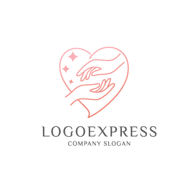 淡いピンク色は、愛情、優しさ、幸福、そして繊細な美しさを象徴し、ブランドの温かく親しみやすいイメージを表現します。ハートは、思いやり、ケア、そして顧客や人々への深い愛情を意味し、人間中心の価値観を伝えます。手を差し伸べるモチーフは、サポート、助け合い、繋がり、そして癒しを象徴しており、顧客に安心感と温かいサービスを提供したいという企業の姿勢を示唆します。煌めく星は、品質の高さ、特別な配慮、そして喜びや希望を意味します。美容サロン、エステ、ウェルネス、医療・介護、NPO、子育て支援、カウンセリング、ハンドメイド製品など、愛情、優しさ、ケア、そして信頼をアピールしたい業界に最適です。
