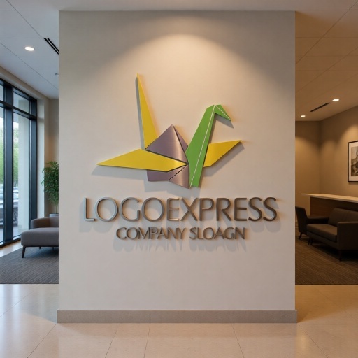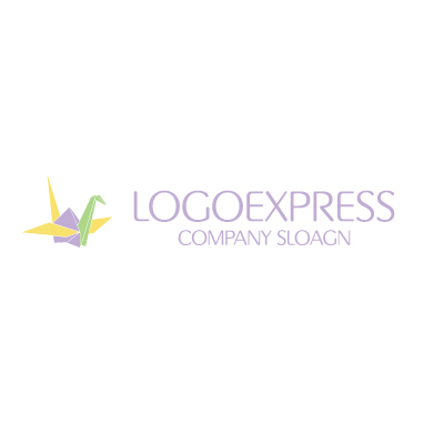 幾何学的なラインで構成された、パステルカラーの折り鶴をモチーフにしたロゴデザインです。