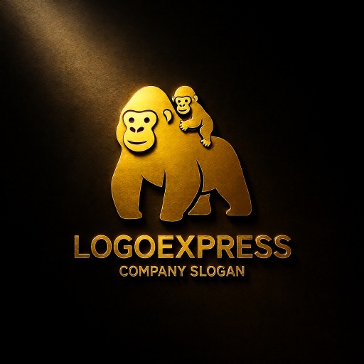 背中に子ゴリラを乗せた親ゴリラをモチーフにした、力強さと温かい保護を表現するロゴデザインです。
