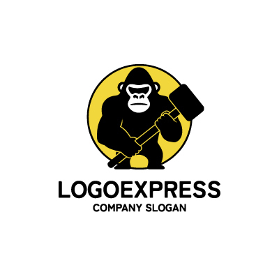 真っ黒なゴリラは、強さ、堅牢さ、不屈の精神、そして圧倒的な存在感を象徴し、企業の揺るぎない力とプロフェッショナリズムを表現します。黄色の円は、活力、エネルギー、明るさ、そしてポジティブなアプローチを意味し、顧客に活気ある印象を与えます。ゴリラが持つハンマーは、建設、解体、創造、問題解決、そして困難を打ち破る実行力を象徴しており、事業の具体的なソリューション提供と確かな成果へのコミットメントを伝えます。建設業、解体業、工具メーカー、セキュリティ、フィットネスジム、スポーツチーム、コンサルティング、重機レンタルなど、力強さ、信頼性、そして具体的な成果をアピールしたい業界に最適です。