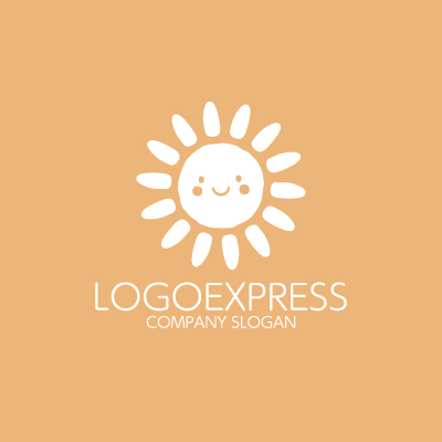 にっこり笑顔の太陽と、様々な色で描かれた光線が特徴の、明るく親しみやすいロゴデザインです。