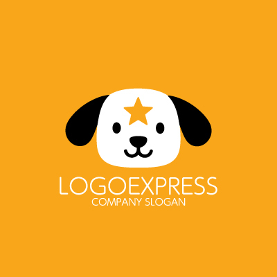 オレンジ色の可愛らしい犬の顔に、白い星マークが輝く親しみやすいロゴデザインです。