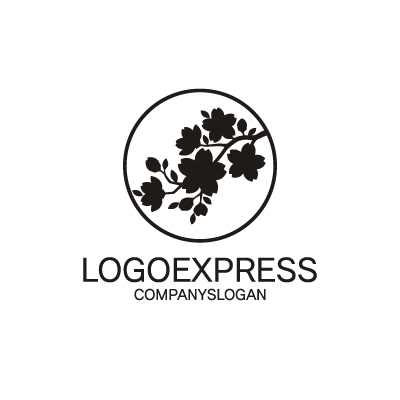 桜の枝と円が彩る和風エレガントロゴ [10910]