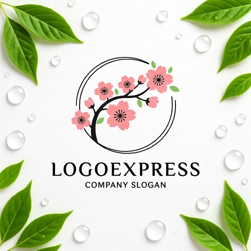 淡いピンク色の桜の花は、美しさ、優雅さ、新しい始まり、そして儚くも強い生命力を意味し、見る人に心和む、ポジティブな印象を与えます。新緑の葉は、自然、成長、再生、そしてフレッシュさを表現し、ブランドの持つ生命力と持続可能な価値を伝えます。円形のフレームは、完全性、調和、グローバルな視野、そして揺るぎない事業基盤を示唆しており、伝統と革新の融合、そして普遍的な美しさを表現します。このロゴは、和風レストラン、旅館、日本酒・お茶関連、観光、高級ブランド、美容サロン、文化交流団体、ウェディングなど、伝統、品質、優雅さ、そして日本らしさをアピールしたいあらゆる業界に最適です。
