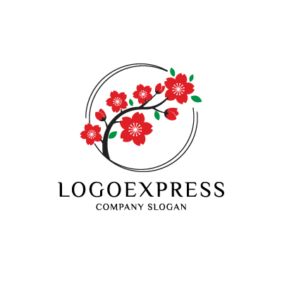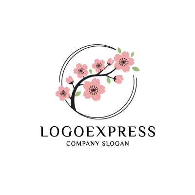桜の枝と円が彩る和風エレガントロゴ [10911]