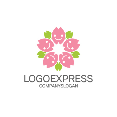 淡いピンク色の花びらは、優しさ、愛情、幸福、そして親しみやすさを象徴し、ブランドの温かく心地よいイメージを表現します。各花びらに描かれた笑顔は、喜び、ポジティブな関係性、そして顧客に提供する心の安らぎを伝えます。花びらの間に配置された鮮やかな緑色の葉は、成長、自然、生命力、希望、そして持続可能な発展を意味し、健全な企業姿勢を示唆します。全体として花や星のように見えるデザインは、結束、調和、そして活気に満ちたコミュニティを表現しており、見る人に親しみやすく、明るい印象を与えます。幼稚園・保育園・託児所、子供向け商品、教育機関、ウェルネス、美容・サロン、NPO、地域コミュニティ、家族向けサービスなど、優しさ、幸福、繋がり、そして成長をアピールしたい業界に最適です。