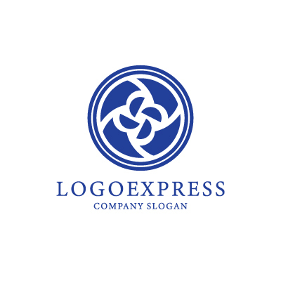 中央に四つ葉のクローバーのような形状が回転するように配置され、円形のフレームで囲まれた、力強くモダンなエンブレムロゴです。