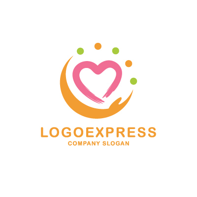 淡いピンク色のハートは、愛情、優しさ、幸福、そして親しみやすさを象徴し、ブランドの温かく心地よいイメージを表現します。手を差し伸べるモチーフは、サポート、助け合い、繋がり、そして癒しを意味し、顧客に安心感と温かいサービスを提供したいという企業の姿勢を示唆します。周囲のオレンジと緑のドットは、活力、希望、成長、そしてポジティブなエネルギーの広がりを表現し、見る人に明るく活気ある印象を与えます。美容サロン、エステ、ウェルネス、医療・介護、NPO、子育て支援、カウンセリング、ハンドメイド製品など、愛情、優しさ、ケア、そして信頼をアピールしたい業界に最適です。