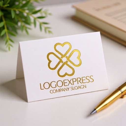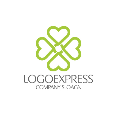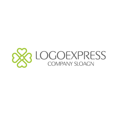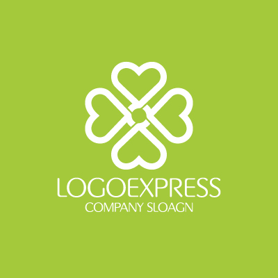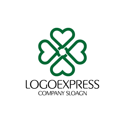 ハート型のラインが中心で繋がり、四つ葉のクローバーのような形状を織りなす、温かく縁起の良いロゴデザインです。
