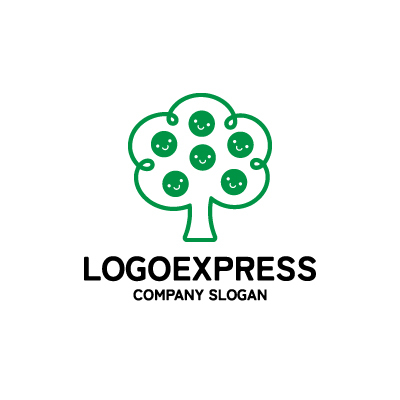 木の幹と葉の輪郭を形成する緑色は、自然、成長、生命力、そして持続可能性を象徴し、企業が持つ健全な発展と環境への配慮を表現します。木に実ったカラフルな笑顔の顔(ピンク、紫、黄、水色、オレンジなど)は、幸福、喜び、多様性、個性、そしてコミュニティの繋がりを意味し、子供たちの無限の可能性や、人々が集い共に成長する温かい環境を示唆します。このロゴは、多様性と活気に満ちたコミュニティを表現し、見る人に親しみやすくポジティブな印象を与えます。教育機関、幼稚園・保育園・託児所、子供向け商品、NPO、福祉団体、地域コミュニティ、家族向けサービスなど、成長、幸福、多様性、そして温かいつながりをアピールしたい業界に最適です。
